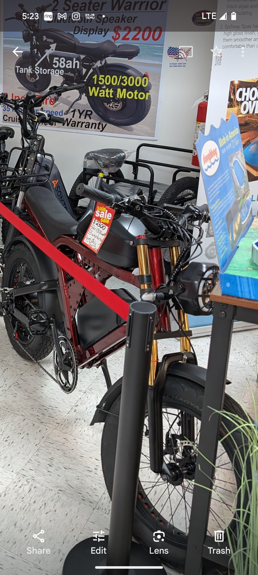 At MALL # 1 - Velotric Nomad 2 Waterproof UL Rated XP6 Bike /XP7 Battery UL Rated & 33 mph Top Speed & LOWER SPEED CAN BE PROGRAMMED